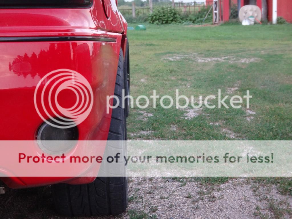 Here it is with the wheels, tires and brakes. I still need to paint my rear calipers but it looks good anyway. Thanks for the wheel idea Erick! Anyway I know my car is far from perfect and it isn't getting a paint job any time soon. I do need new fog lights however. Tails should be on by Monday.