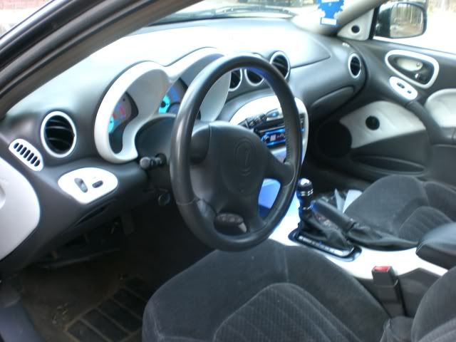 my engine is done, so im just giving up on this car.. im trying to sell pretty much my whole interior. most of you have seen it in pictures but the whole thing together is amazing in person. white with some black (painted) trim pieces, custom switches, everything changed to blue leds, got some gauges and various overlays like reflectors and bumper molding overlays, etc, cleared needles, black leather stuff from redline, momo shifter, ledglow lighting, and some more stuff. i also have a set of 5.25" diamond audio hex components to sell, an amp, fat mat megamat (awesome product), a shorty antenna, tinted gt tails, tinted led tails, LOTS of car audio installation stuff just ask me, a nice 4 channel amp, 2 front wheel hubs BN, blue taylor wires, some headlight bulbs, uncut pontiac keys, ventvisors BN, pretty much every stock part on the car, lots of leds, grills, high output alternator, lots more stuff. ill post an organized thread in a couple days. pm me if you're interested in anything if you want first dibs