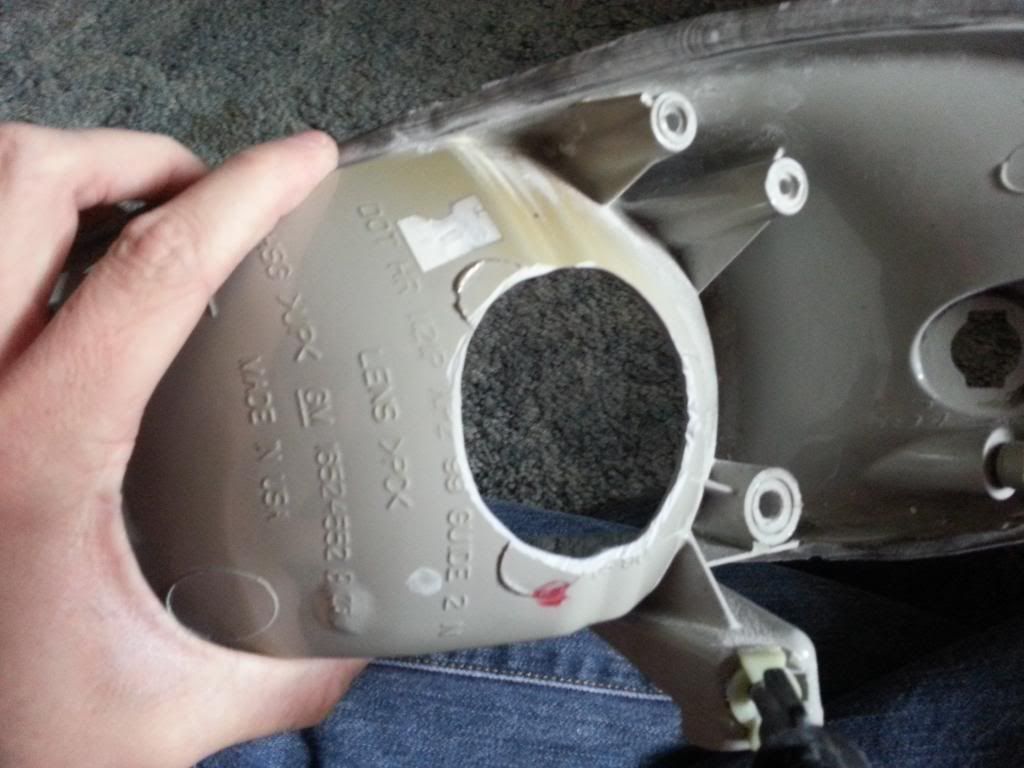 Experimenting with my stock headlights. Fk you all for wanting me to do it on one set and one set only, I'm glad I have another set to experiment with things so I know it will work. Cut off more on the back to the point where the threaded shaft is pretty much useless now in terms of tightening up the projector. The GTi-R shroud still doesn't necessarily cover up the "guts" of the projector and light still reflects out, truth be told the bowl is still chrome and not black but still needs more depth. Bullet shrouds should fit alot better not without having to shave much off the face. Might buy the Iris shroud seeing as I only need like 1/4" of extra depth to cover the areas I need to cover. If that continues on then I'll have 4 sets of shrouds