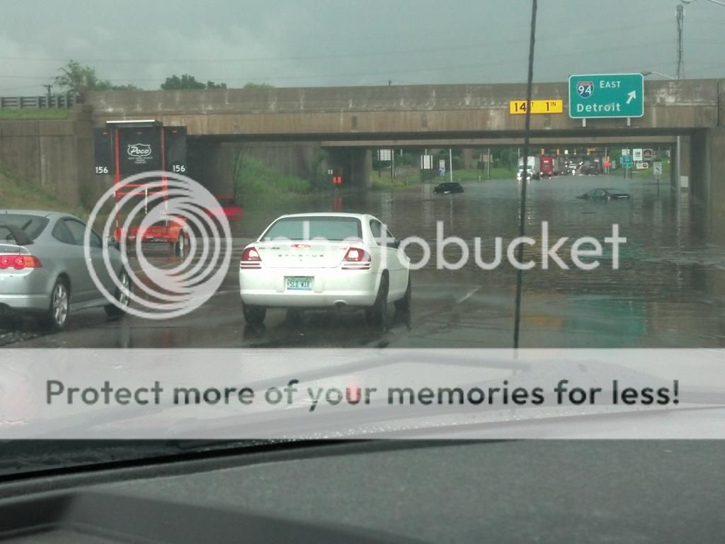 Some area's of Detroit had 6" of rain. One of the towns said their drainage system can hold and pump 50,000,000 (yes million) gallons before backing up, well it backed up.... some picture from the detroit forums.
