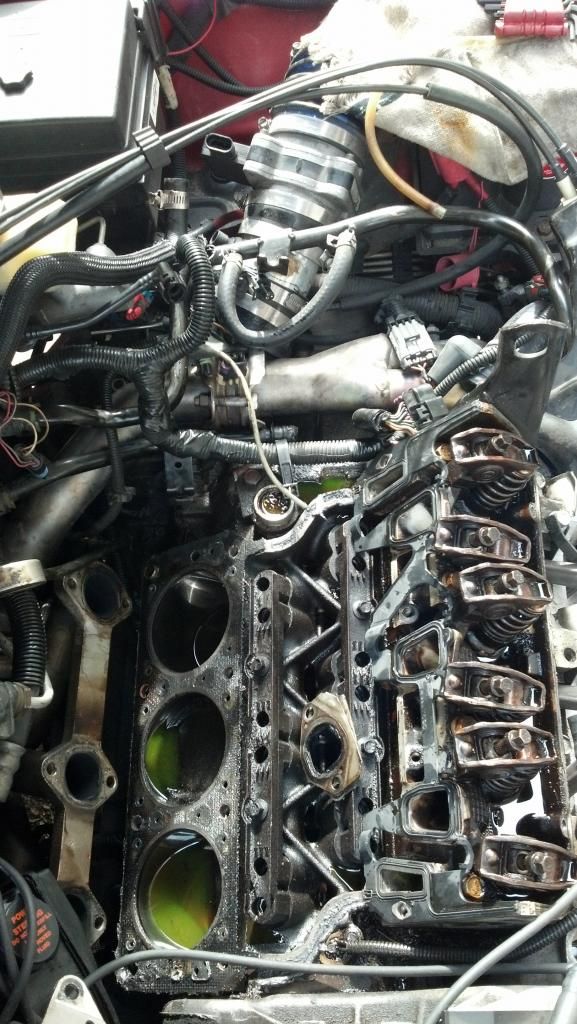 right.yeah head is back on, lim is back on, power stearing, idler, alt, and tensoner are all back on. valve covers back on. had to stop today when i noticed the o ring on my fuel rail needs to be replaced. of course the normal part stores didnt have one, so i'm praying napa has one for me tomorrow. its a lot of work, but when its all sealed up it will be worth it, i hope. if i turn the key and all hell breaks out, i'm liable to blow the mother f*cker up at this point. and part out whats still alive after words ![]()